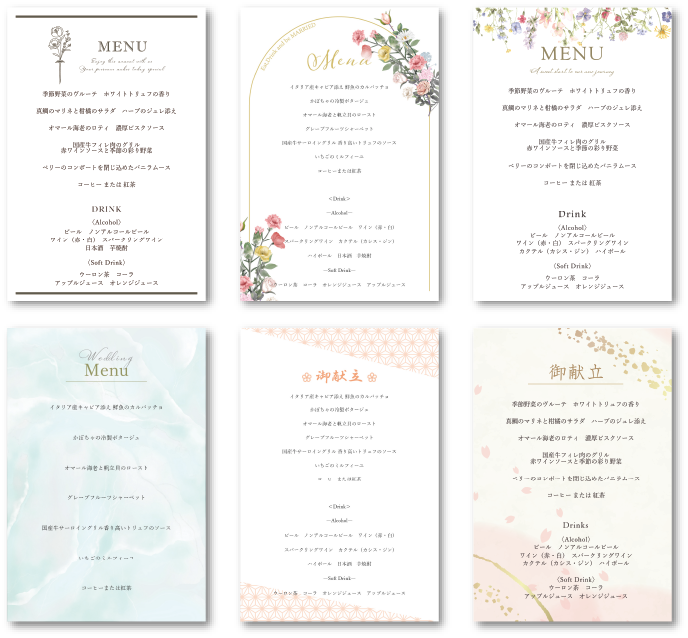 ご注文後の内容変更は承っておりません。ご出席予定のゲスト様がご欠席となった場合は、キャンセルを承ります。