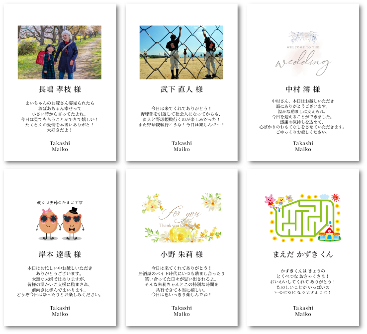 例えば引出物が付かないお子様の場合など、カードだけでも無料で作成し付けることができます。