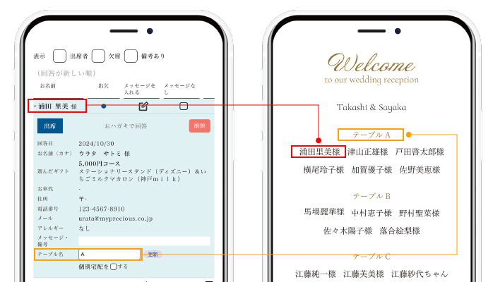回答いただいていないゲストの方には、直接、おふたりより出欠のご確認をお願いいたします。
