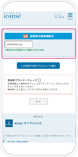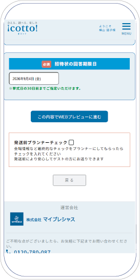 担当プランナーに確認してもらい、チェックが入ると送信することができます。