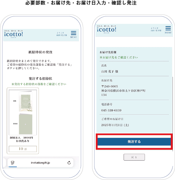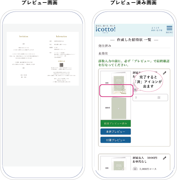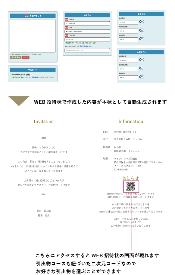 WEB招待状で作成した内容で紙招待状を生成することができます