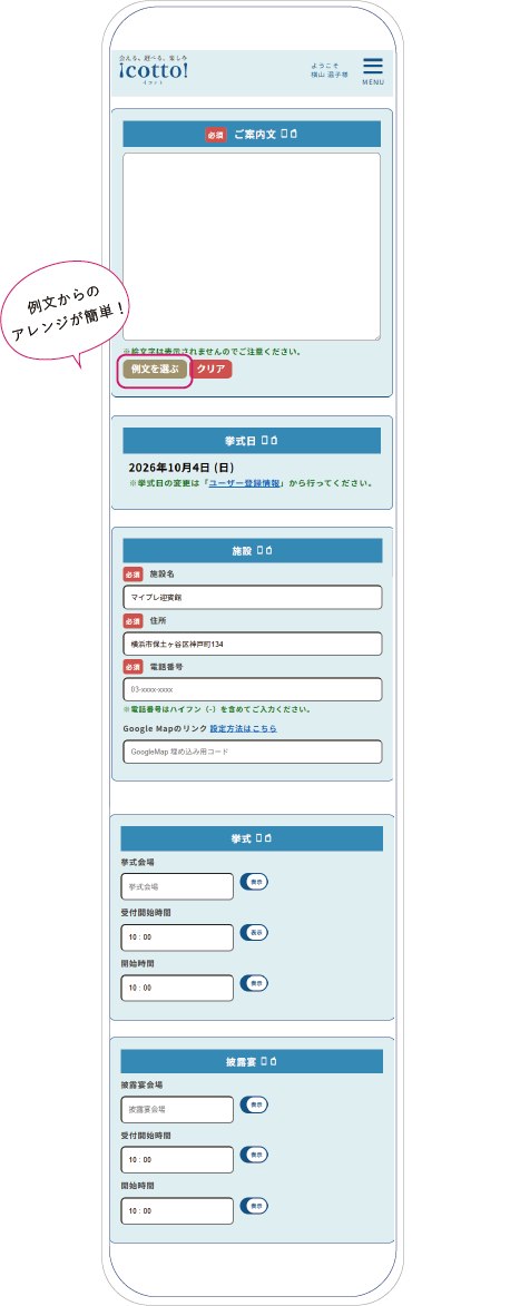 ご案内文と施設情報、挙式・披露宴情報の入力
