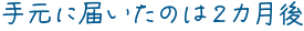出張や旅行が続いたり、タイミングが悪くて受け取れなかったりで、選んだものが手に入ったのは2カ月後。